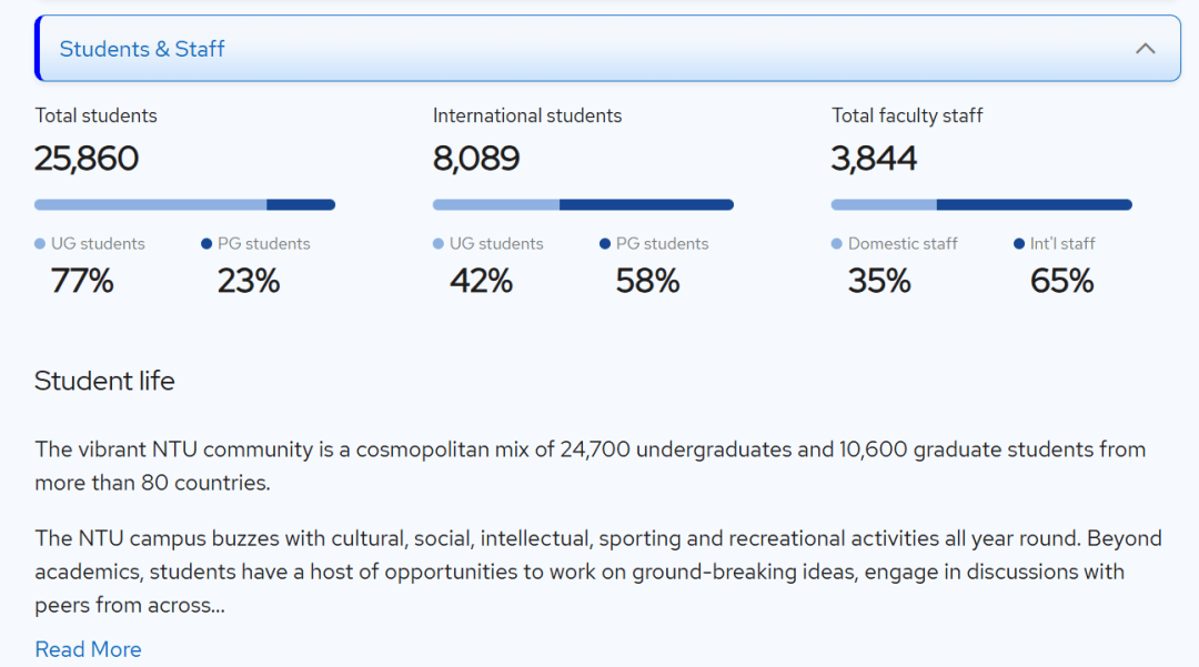 ,而且根据QS TOP Universities官网数据,NTU本科录取的国际生占比约为31%,其中42%为本科生本科,同样是比较友好的。