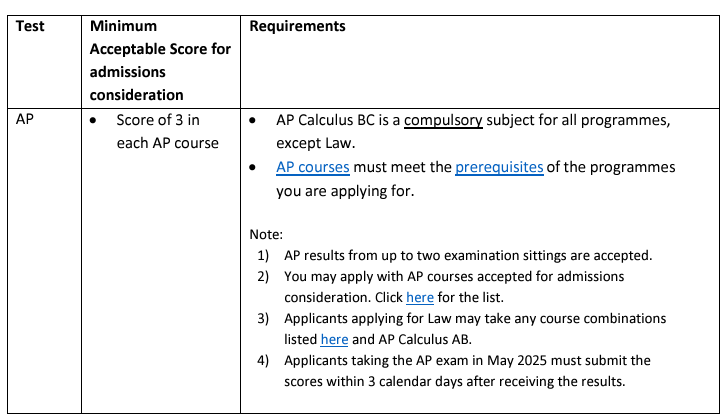 :NO.1:提供5门以上AP考试成绩(绝大部分专业都必须提供AP微积分BC的成绩,法律专业未强制要求);